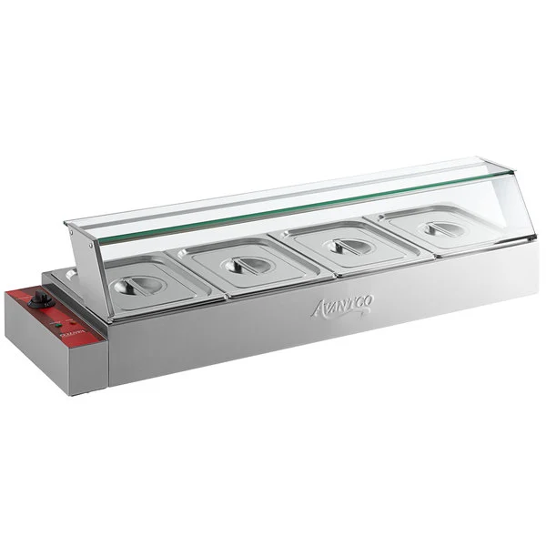 BANO MARIA ELECTRICO SOBRE BARRA PARA 4 INSERTOS MEDIOS 1750W DE 120V MEDIDAS: 46 X 14 X 10 PG MARCA AVANTCO