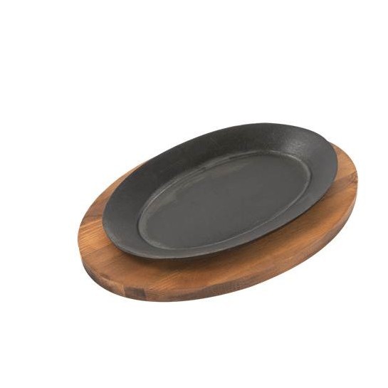 COMAL OVALADO DE HIERRO FUNDIDO 9 1/4 X 7 PG CON BASE DE MADERA