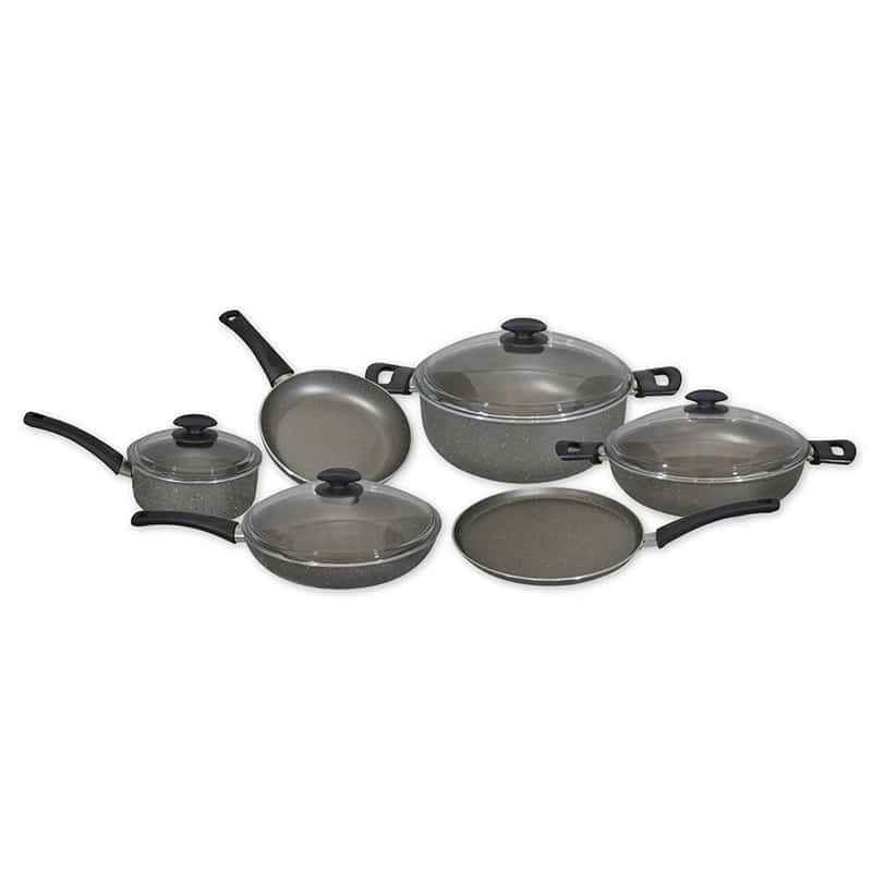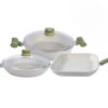 Batería Chicago 10 pz que incluye una olla de 28 cm con tapa, budinera de 28 cm con tapa, cazo de 18 cm con tapa, sarten de 26 cm con tapa, sarten 20 cm y sarten crfepero 28 cm