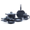 Batería Oxford 15 pz que incluye una budinera de 26 cm, cazo de 20 cm, sarten de 20 cm, sarten de 26 cm, pocillo de 14 cm, comal redondo, 3 recipientes y 3 utensilios de nylon