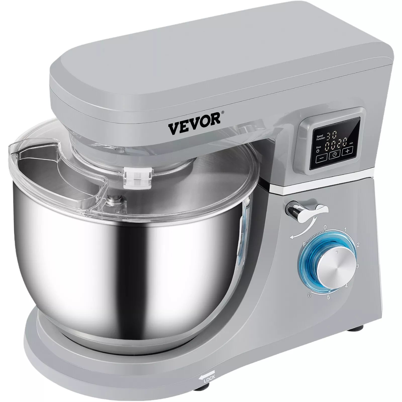 BATIDORA PLANETARIA 7.4 QT. (7 LTS) VEVOR 6 velocidades, Con pantalla LCD, Tazon de acero inoxidable, Voltaje: 120 V Potencia: 660 W