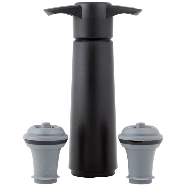 BOMBA DE VACIO PARA VINOS COLOR NEGRO CON 2 TAPONES