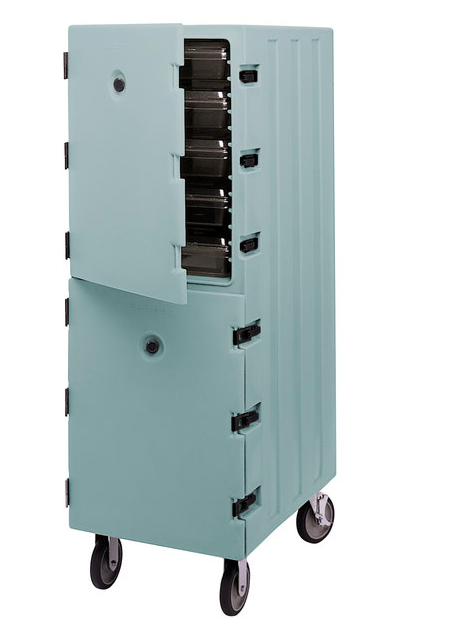 CAJA TERMICA PARA ALIMENTOS DOBLE CON RUEDAS 21 1/2 X 33 1/4 X 63 3/4 PG RECIBE 26 CHAROLAS