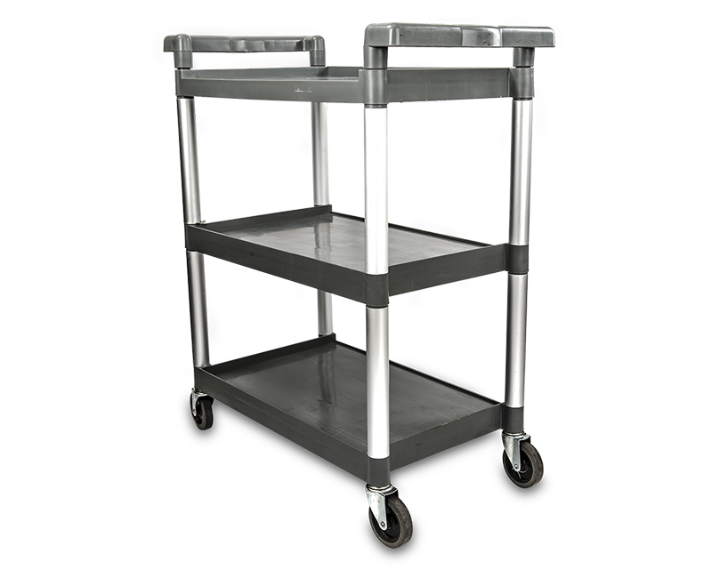 CARRO DE SERVICIO DE PLASTICO 18 X 32 PG DE 3 REPISAS LISAS COLOR GRIS MARCA LUXOR