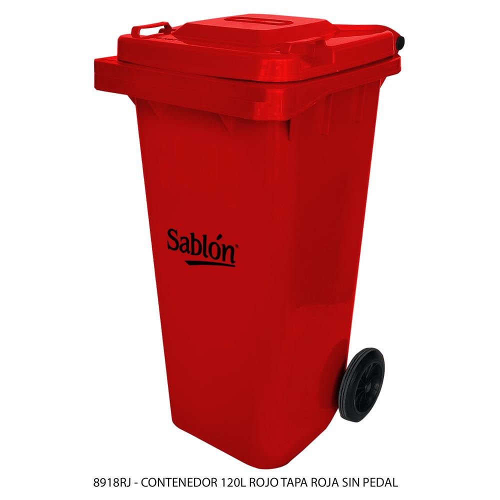 Cesto de 120 litros / 31.74 gl , con asas en la tapa y ruedas que facilitan su desplazamiento