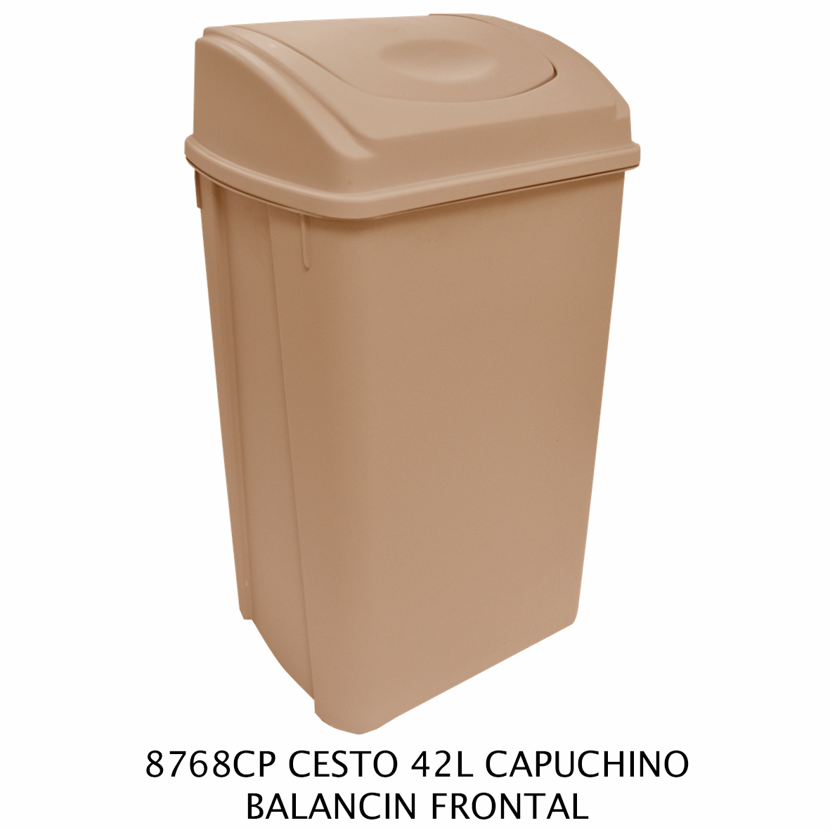 Cesto de 42 Litros Con Tapa Balancin Frontal Color Capuchino
