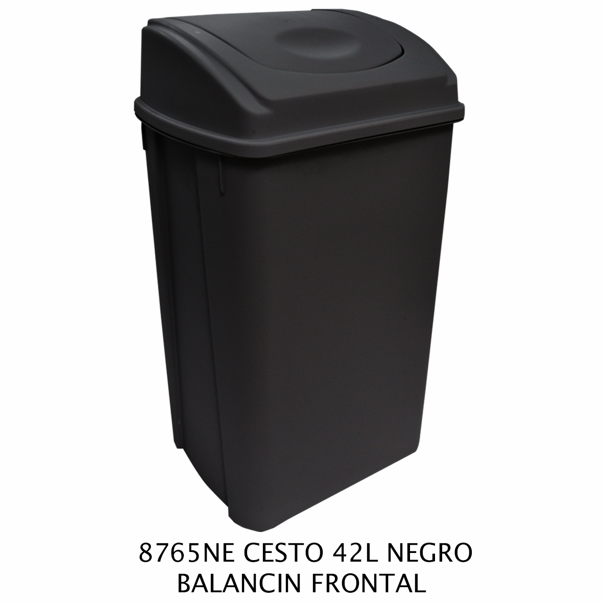 Cesto de 42 Litros Con Tapa Balancin Frontal Color Negro
