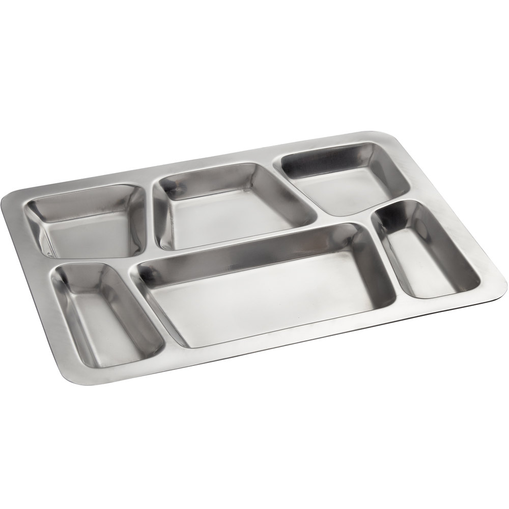 Charola con 6 compartimentos de Acero inoxidable Centro Trapezoide