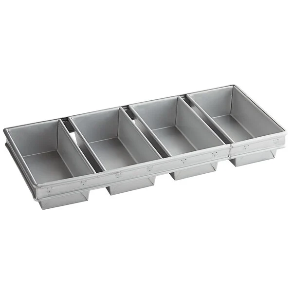 CHAROLA DE 4 COMPARTIMENTOS PARA PAN DE CAJA EN ACERO ALUMINIZADO MEDIDA GENERAL: 55.5 X 24.76 X 7.2 CM COMPARTIMENTO: LARGO INFERIOR 20.95 CM