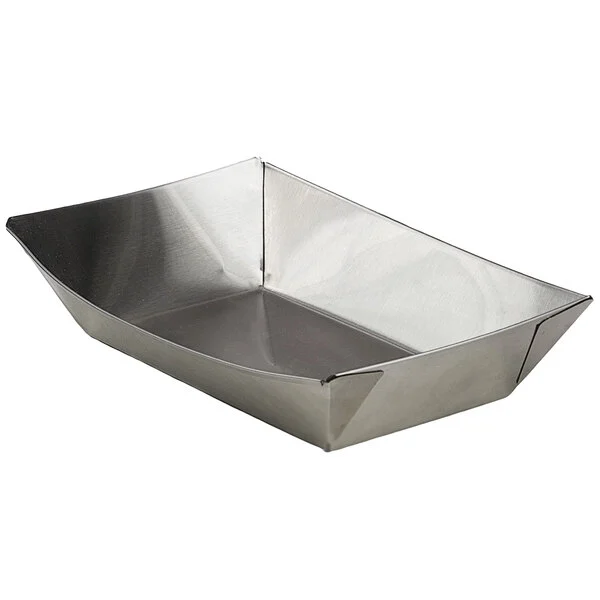 CHAROLA RECIPIENTE DE ACERO INOXIDABLE PARA PAPAS FRITAS COLOR NEGRO 6 X 4 1/2 X 1 1/4 PG (PRECIO POR 12 PIEZAS)