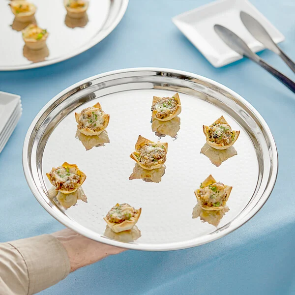 CHAROLA REDONDA DE SERVICIO 13 PG TERMINADO MARTILLADO ACERO INOXIDABLE CHOICE (PRECIO POR 12 PIEZAS)