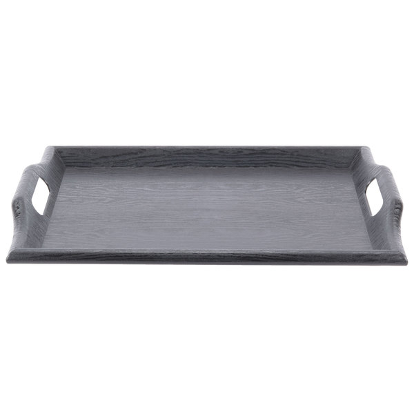 CHAROLA ROOM SERVICE DE 14 x 18 PG PLASTICO ESTILO MADERA COLOR NEGRO CON AGARRADERAS