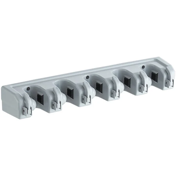 COLGADOR DE ESCOBAS DE 6 ESPACIOS Y 5 GANCHOS PLASTICO 40 CM GRIS LAVEX