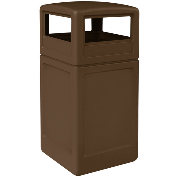 CONTENEDOR CUADRADO PARA BASURA TAPA DOMO POLYTEC 42 GALONES COLOR CAFE OSCURO