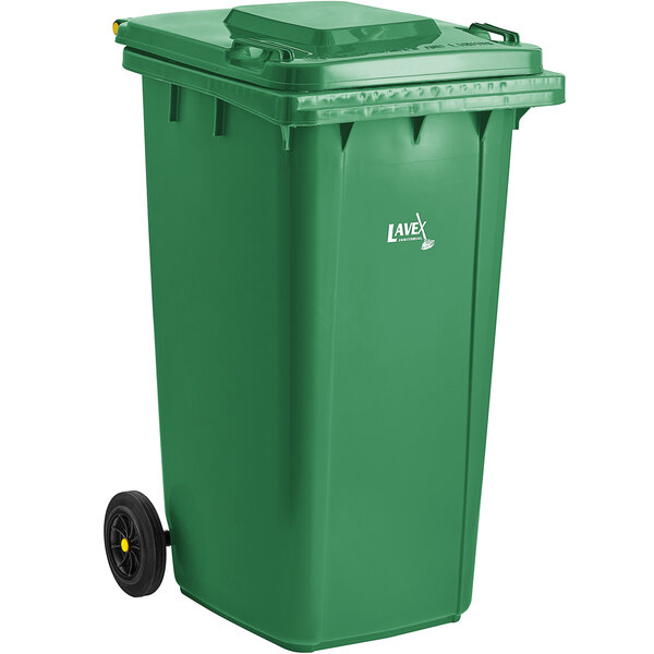 CONTENEDOR DE BASURA RECTANGULAR CON RUEDAS 240 LITROS TAPA ABATIBLE COLOR VERDE