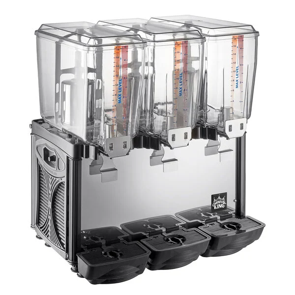 DISPENSADOR DE BEBIDAS REFRIGERADO TRIPLE 5 GALONES (18.92 LTS) CADA TINA MARCA CARNIVAL KING MEDIDAS: 23 5/8 X 16 5/16 X 29 1/8 PG