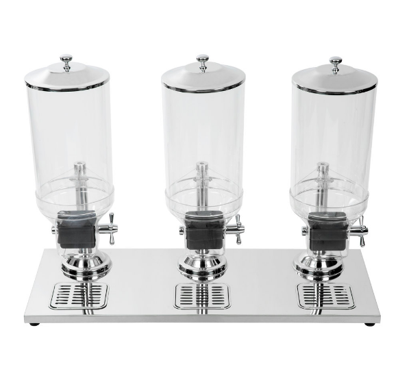 DISPENSADOR DE CEREAL TRIPLE CONTENEDOR DE 8LTS POR CONTENEDOR 28 1/2 X 14 X 26 PG MARCA CHOICE