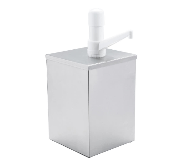 DISPENSADOR DE CONDIMENTOS 1 GALON MEDIDAS: LARGO 7 1/4 PG, ANCHO 7 1/4 PG Y ALTO 15 PG (CATSUP, MOSTAZA, MAYONESA)