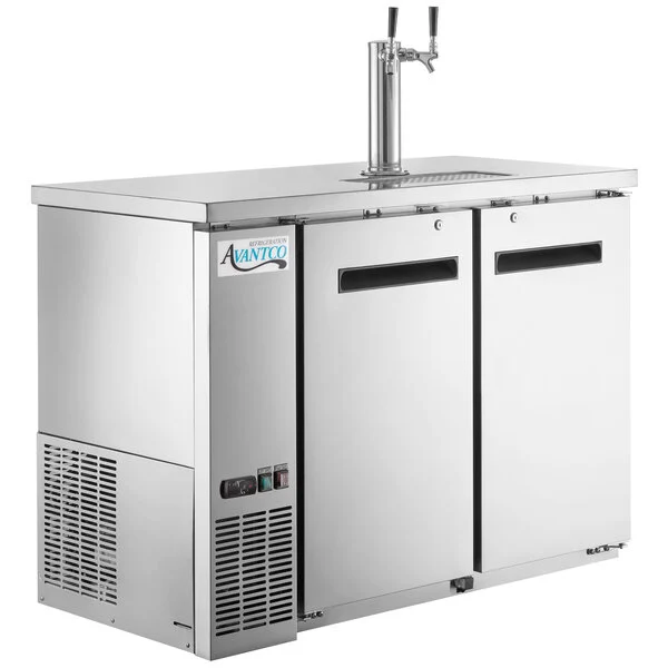 ENFRIADOR DE CERVEZA Y BEBIDAS CON 2 DISPENSADORES MEDIDAS: 48 3/4 X 24 7/16 X 36 5/8 PG CON UNA PUERTA MEDIDAS INTERIORES: 19 X 18 PG, DE 120V, 1/4 HP AVANTCO