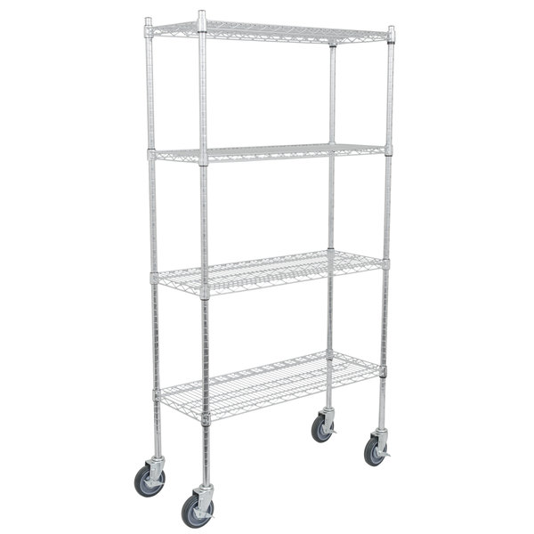 Estante de 14″ x 36″ Cromado con Postes de 64″ y Ruedas