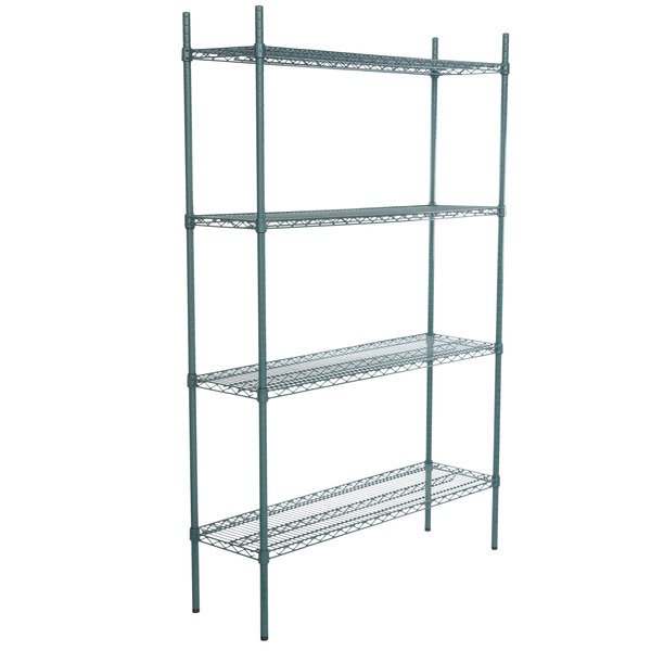 Estante de 14 x 48 Verde Epoxico con Postes de 74 pg de 4 entrepanos