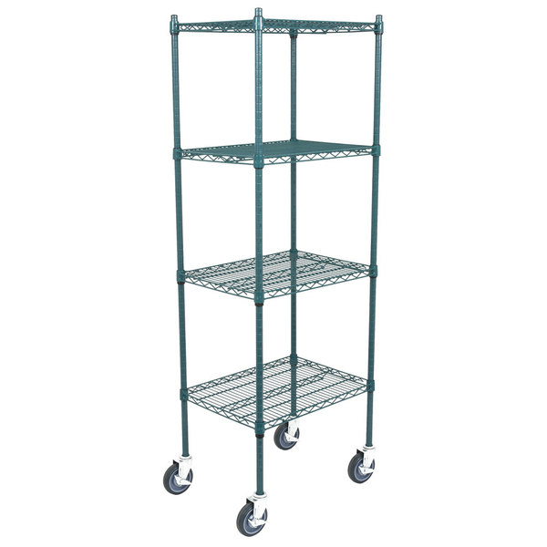Estante de 24″ x 24″ Verde Epoxico con Postes de 64″ y Ruedas