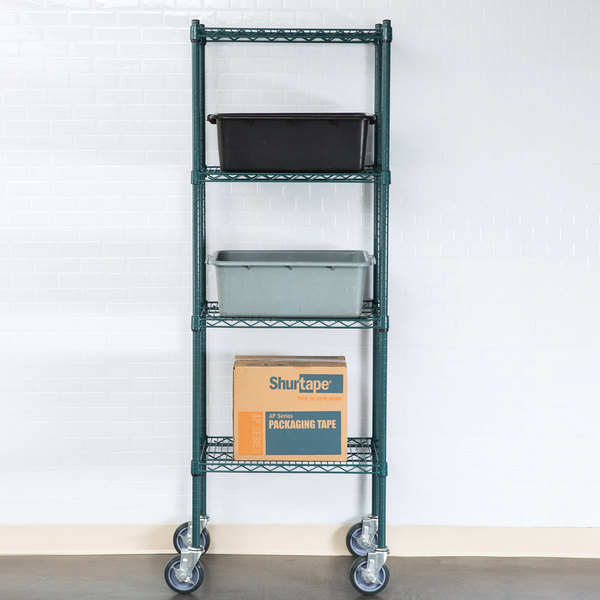 Estante de 18″ x 24″ Verde Epoxico con Postes de 64″ y Ruedas
