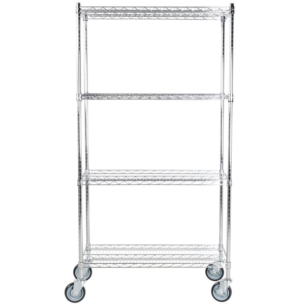 Estante de 18″ x 36″ Cromado con Postes de 64″ y Ruedas