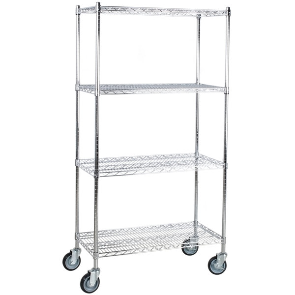 Estante de 24″ x 36″ de Acero Inoxidable con Postes de 64″ y Ruedas