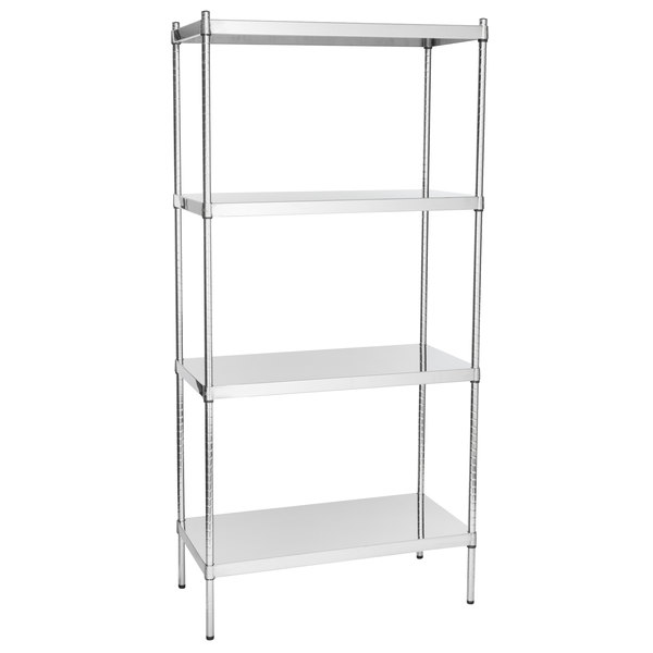 Estante de 24 x 36 de Acero Inoxidable con Postes de 64 y Ruedas