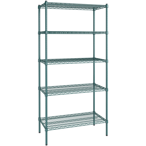 Estante de 18 x 36 Verde Epoxico con Postes de 74 pg de 5 entrepanos