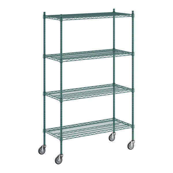 Estante de 18 x 42 Verde Epoxico con Postes de 64 pg y Ruedas 4 repisas