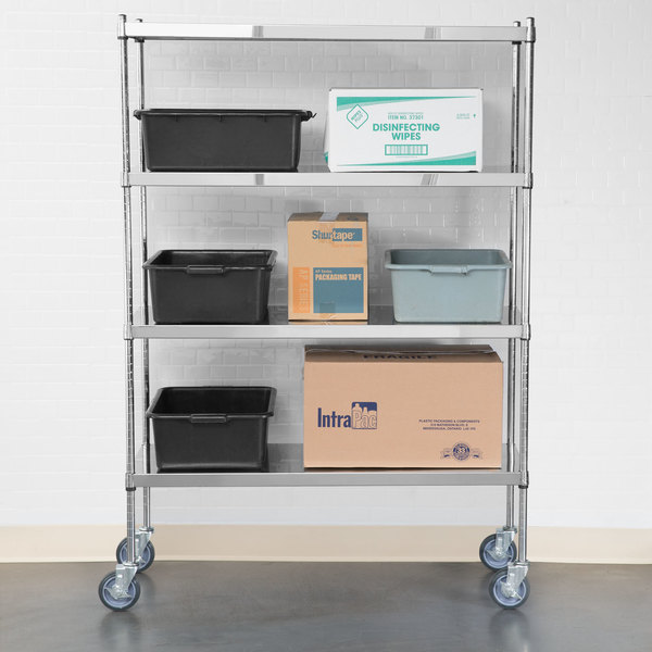 Estante de 18 x 60 de Acero Inoxidable con Postes de 64 y Ruedas