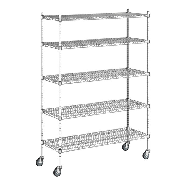 Estante de 24″ x 60″ de Acero Inoxidable con Postes de 64″ y Ruedas