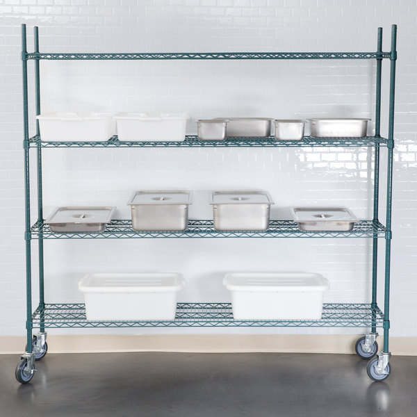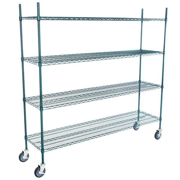 Estante de 18″ x 72″ Verde Epoxico con Postes de 64″ y Ruedas