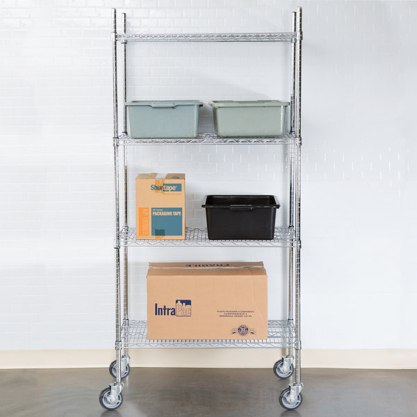 Estante de 21″ x 36″ Cromado con Postes de 64″ y Ruedas