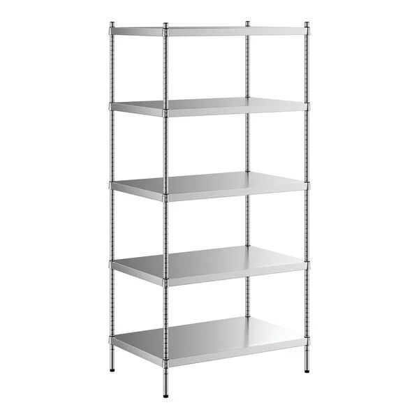 Estante de 24 x 36 de Acero Inoxidable con Postes de 74 de 5 entrepanos solidos