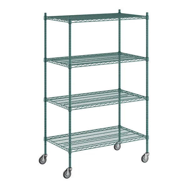 Estante de 30″ x 48″ Verde Epoxico con Postes de 64″ y Ruedas
