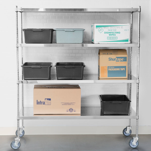Estante de 24 x 36 de Acero Inoxidable con Postes de 64 y Ruedas