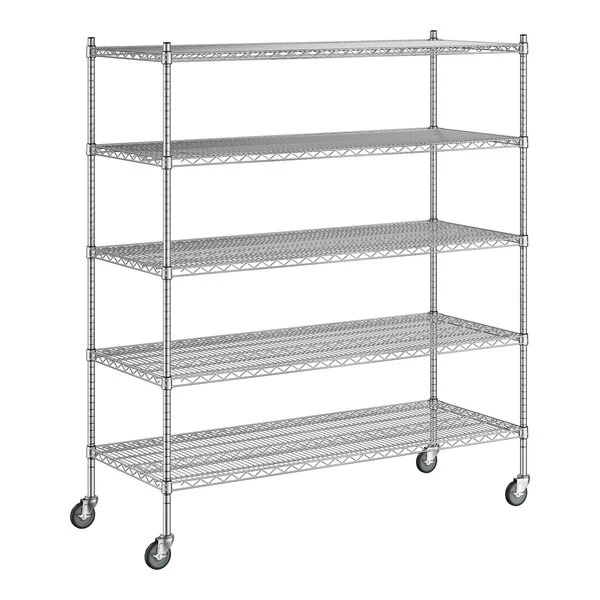 Estante de 24 x 60 de Acero Inoxidable con Postes de 70 y Ruedas de 5 entrepanos