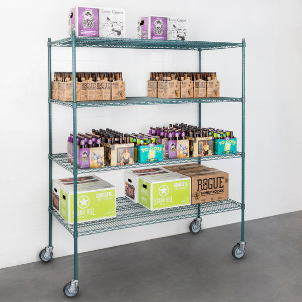 Estante de 30″ x 48″ Verde Epoxico con Postes de 64″ y Ruedas