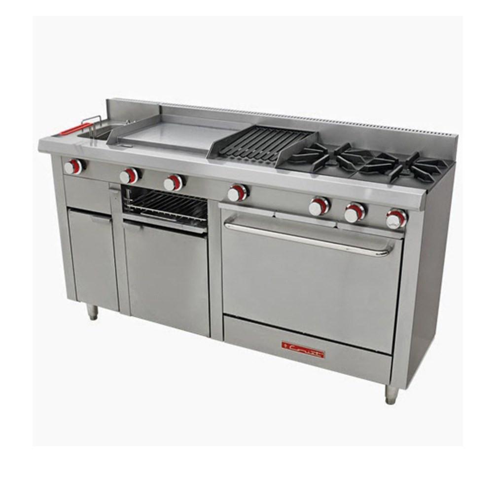 Estufa Multiple Petit Turbo PREMIUM A Gas 1 Tina 1 Plancha 1 Asador Con Parrilla Reversible 2 Parrillas Superiores 1 Horno Grande 1.710 X 0.63 X 0.96 M