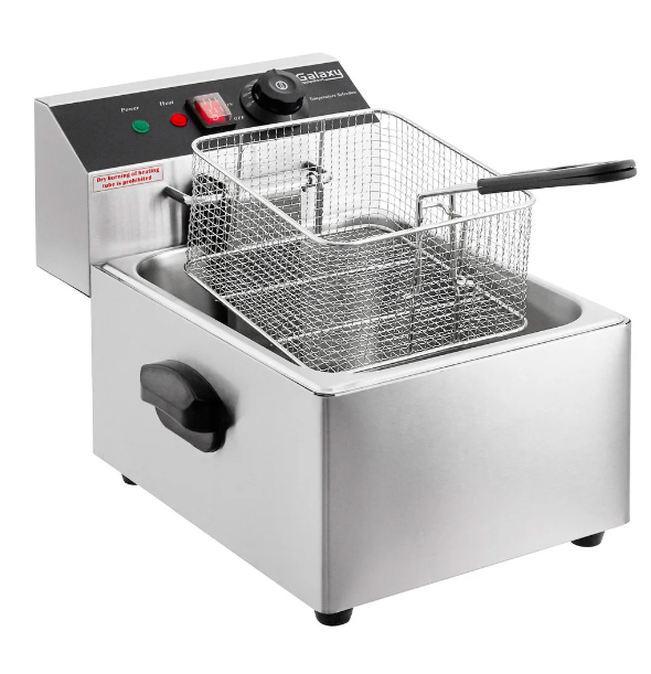 FREIDORA ELECTRICA 10 lb (5 lts) F100, MARCA GALAXY, MEDIDAS: 12 1/2 x 16 3/4 x 11 1/2 pg, ELECTRICA , Rango 140 – 370 Degrees F, 110 Volts, 1600 W