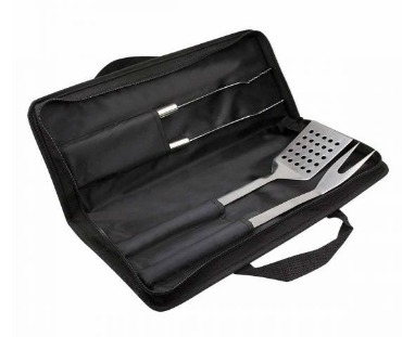 KIT DE UTENSILIOS PARA ASADO CON MALETA DE TELA (3 PIEZAS) PINZA, VOLTEADOR Y TRINCHE
