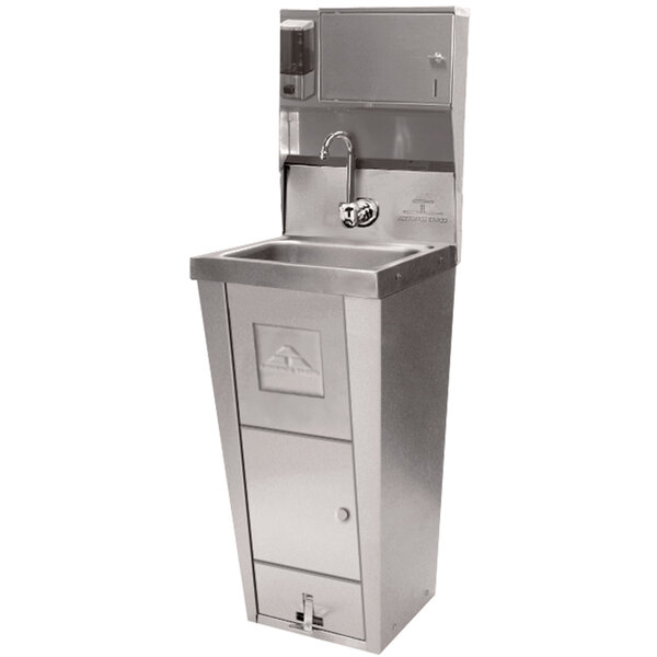 LAVAMANOS TIPO GABINETE FABRICADO EN ACERO INOXIDABLE CON VALVULA DE PEDAL, DISPENSADOR DE JABON, PAPEL Y BOTE DE BASURA MOD. 7-PS-99 ADVANCE TABCO