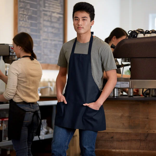 MANDIL COLOR AZUL MARINO MEDIDA 25 x 28 PG CON TRES BOLSAS POLI-ALGODON