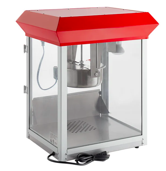 MAQUINA FABRICADORA DE PALOMITAS CARNAVAL KING PM850, CAP 8oz, marco de acero inox rojo brillante, electrica 850 W