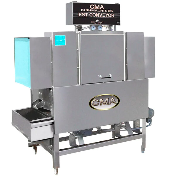MAQUINA LAVAVAJILLAS TRANSPORTADORA MODELO EST-44 DE ALTA TEMPERATURA, LAVA HASTA 243 RACK POR HORA, LAVADO DE 3 ETAPAS, 208 V, 1HP TRIFASICA MARCA CMA