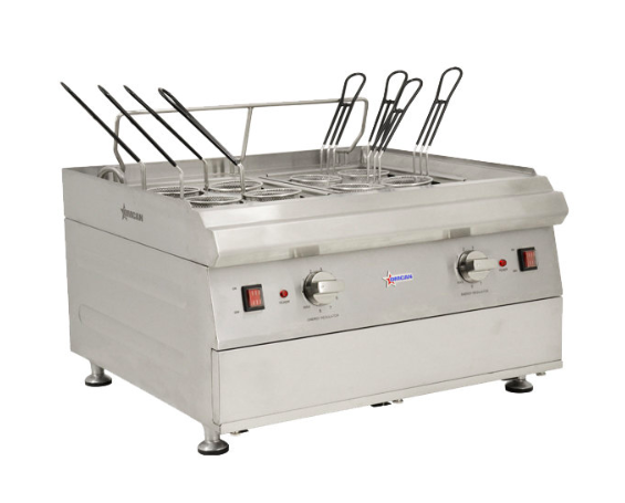 MAQUINA PARA COCER PASTA Countertop Double Tank Electric Pasta Cooker – 240V, 7200W 8 COMPARTIMENTS
