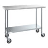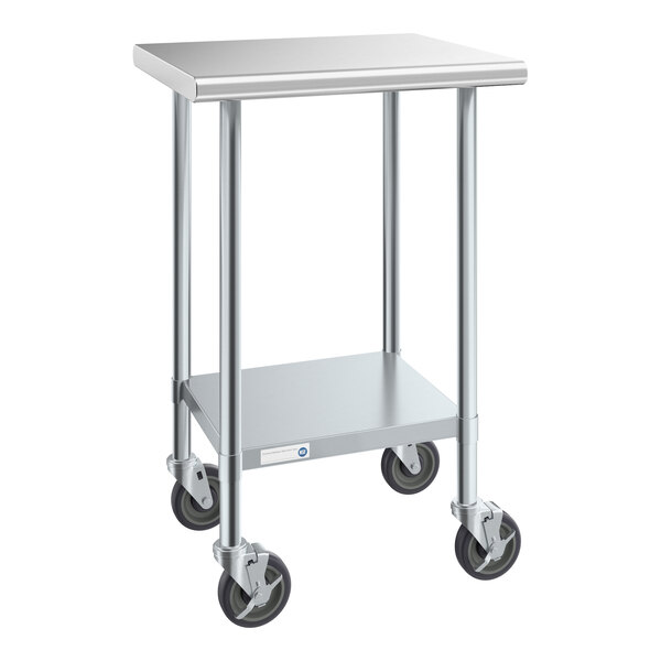MESA DE TRABAJO 24 X 24 PG (61 x 61 CM) CON ENTREPANO Y RUEDAS EN ACERO INOXIDABLE 430 CALIBRE 18